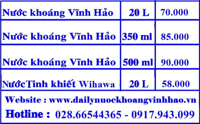 Đại lý Anh Thư cung cấp tất cả các sản phẩm của Công Ty nước khoáng Vĩnh Hảo như sau